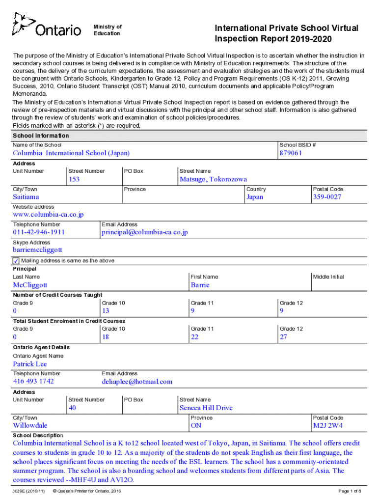 International Private School Virtual Inspection Report 20192020Ministry of Education purpose of the Ministry of Educations International Private School Virtual Inspection is to ascertain whether the