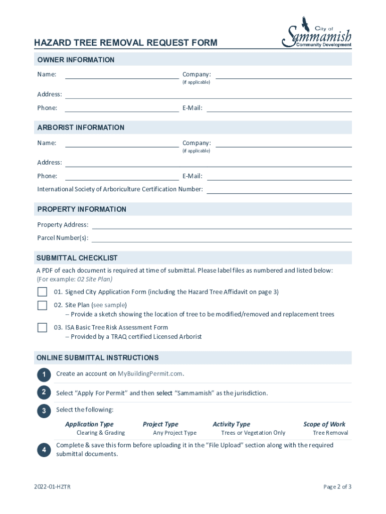 Get the free hazard-tree-removal-form.pdf - City of Sammamish