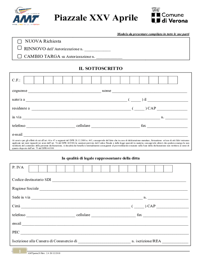 Il modulo deve essere compilato seguendo le istruzioni fornite e riempiendo tutti i campi obbligatori.