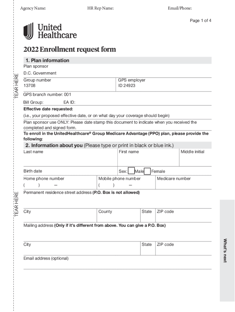 Enrollment request dormancy Name:HR Rep Name:Email/Phone: Page 1 of 42022 Enrollment request form 1. Plan informational sponsored. C. Government Group number 13708GPS employer ID 24923GPS branch number: