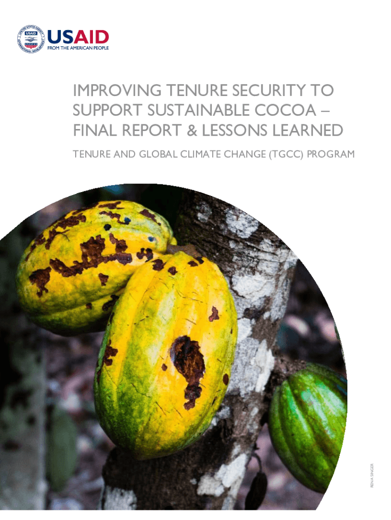 IMPROVING TENURE SECURITY TO SUPPORT SUSTAINABLE COCOA FINAL REPORT & LESSONS LEARNEDRENA SINGERTENURE AND GLOBAL CLIMATE CHANGE (GCC) PROGRAMUSAID Contract No: AIDOAATO1300016Cover Photo:Mature cocoa