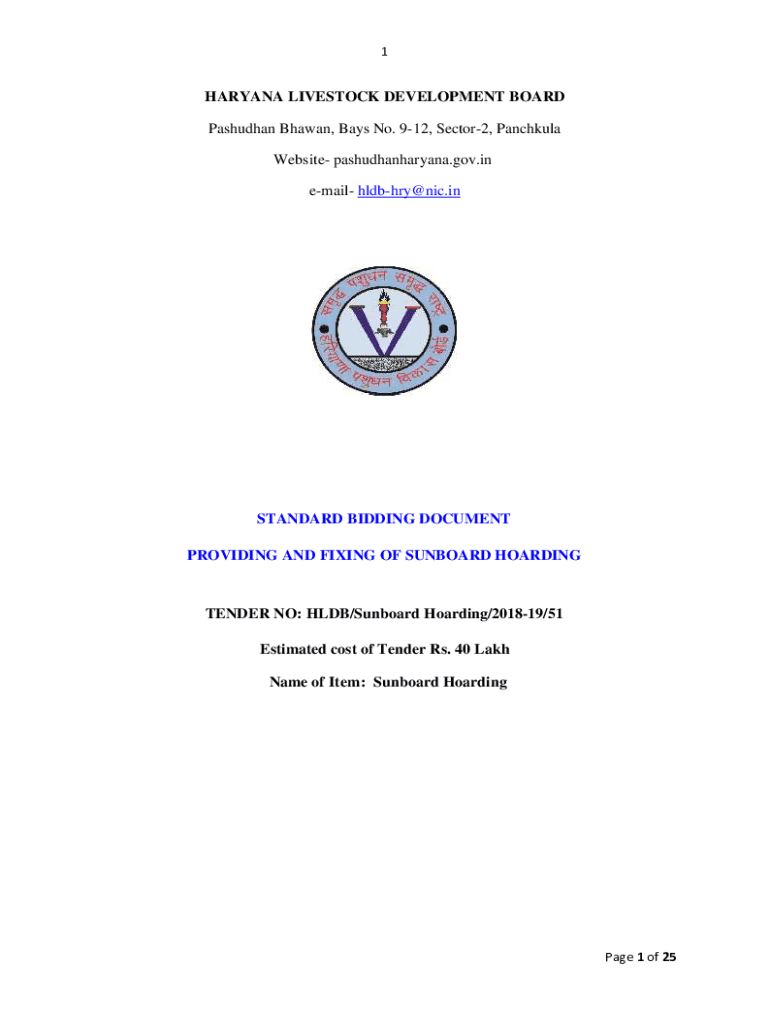 1HARYANA LIVESTOCK DEVELOPMENT BOARD Pashudhan Shawn, Bays No. 912, Sector2, Patchouli Website pashudhanharyana.gov.in email hldbhry@nic.inSTANDARD BIDDING DOCUMENT PROVIDING AND FIXING OF ONBOARD