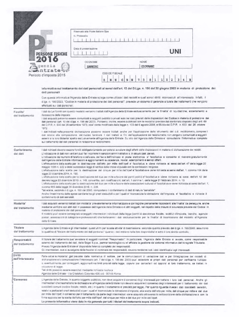Willful n try ate period d\'impost 2015UNICOGNOMENOMEI ZANNINIIGIOVMNI
