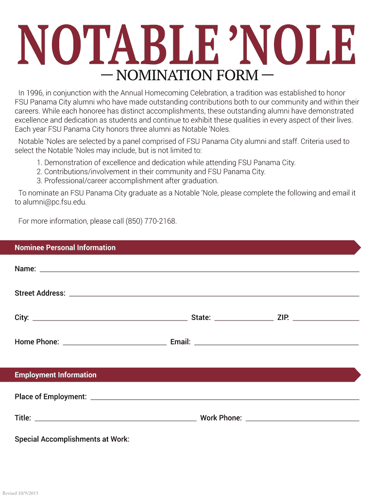Get the free Notable Noles form.pdf - pc fsu