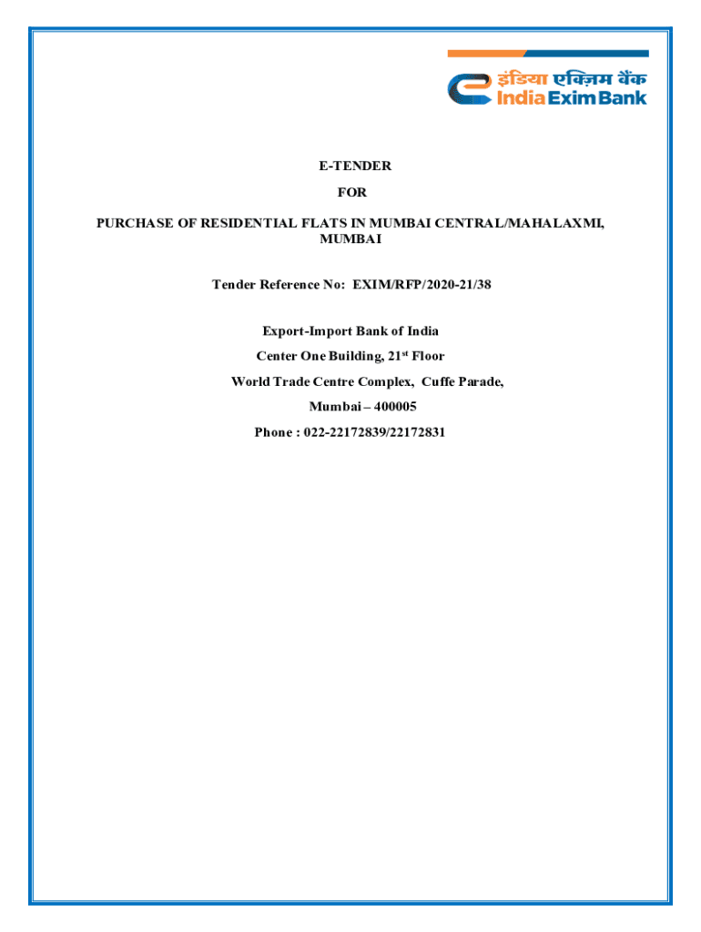 TENDER FOR PURCHASE OF RESIDENTIAL FLATS IN MUMBAI CENTRAL/THALAMI, MUMBAI Tender Reference No: EXIT/RFP/202021/38 ExportImport Bank of India Center One Building, 21st Floor World Trade Center Complex,