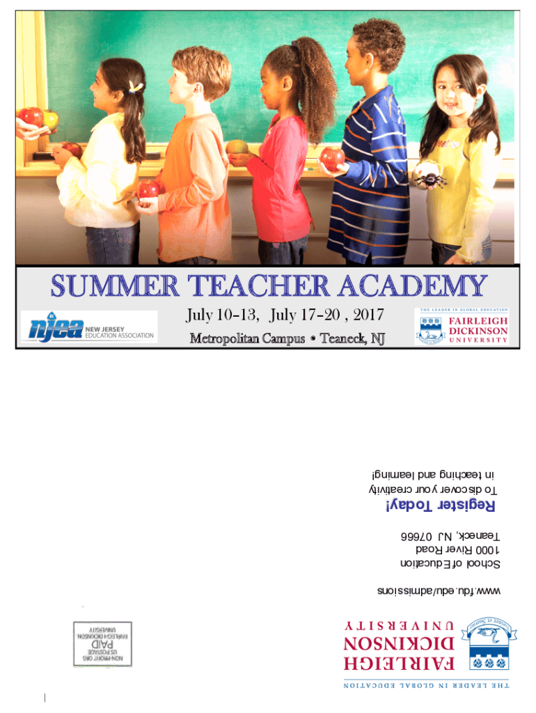 Www.fdu.edu/admissions School of Education 1000 River Road Tea neck, NJ 07666Register Today! To discover your creativity in teaching and learning! Metropolitan Campus Tea neck, NJ July 1013, July