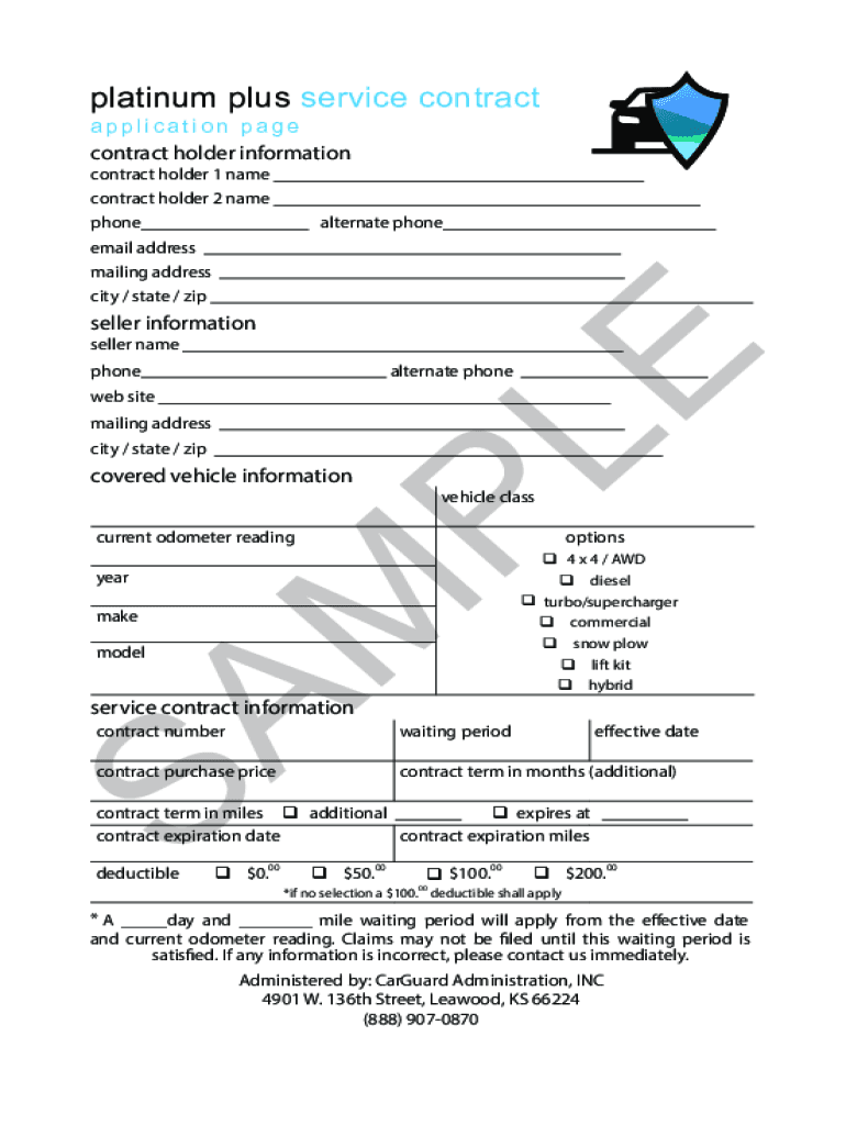 Platinum plus service contract application page contract holder information contract holder 1 name contract holder 2 names phone alternate phone email address mailing address city / state / zip seller