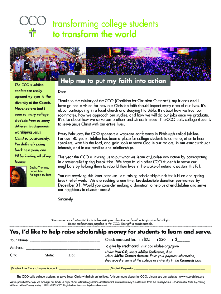 Transforming college students to transform the world Help me to put my faith into action CCS Jubilee conference reallyDearopened my eyes to the diversity of the Church. Never before had I seen so