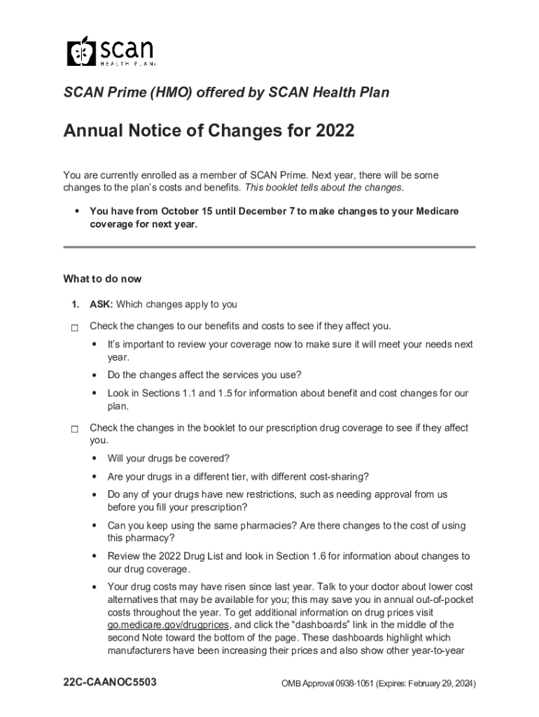 SCAN Prime (HMO) offered by SCAN Health PlanAnnual Notice of Changes for 2022 You are currently enrolled as a member of SCAN Prime. Next year, there will be some changes to the plans costs and benefits.
