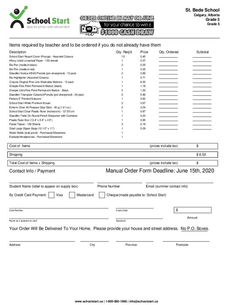 St. Bede School Calgary, AlbertaGrade 5 Grade 5Items required by teacher and to be ordered if you do not already have them Description. Req\'preschool Start Report Cover (Prongs) Assorted Colours100.45Hilroy