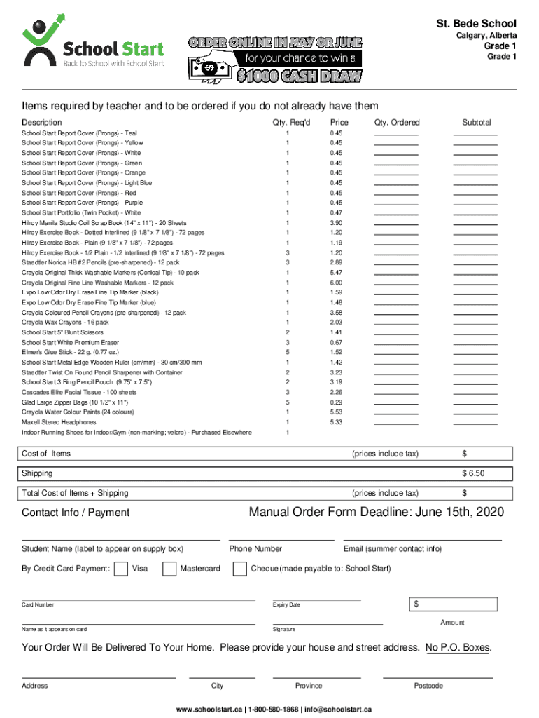 St. Bede School Calgary, AlbertaGrade 1 Grade 1Items required by teacher and to be ordered if you do not already have them Description. Req\'preschool Start Report Cover (Prongs) Teal10.45School Start