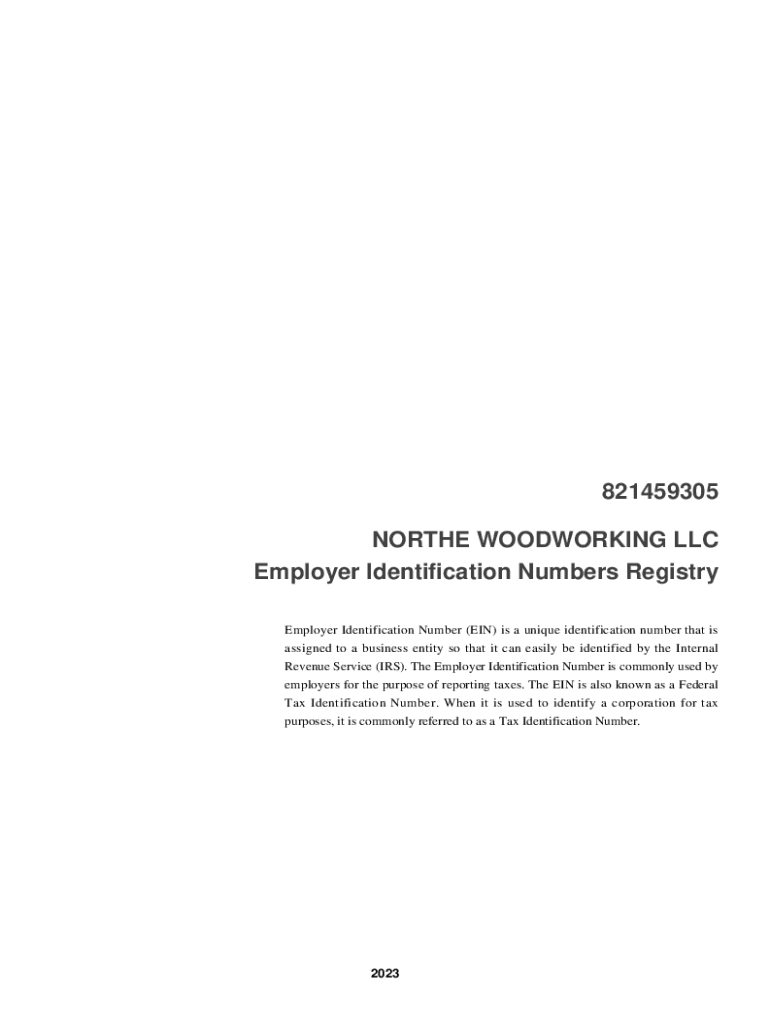 821459305 NORTH WOODWORKING LLC Employer Identification Numbers Registry Employer Identification Number (EIN) is a unique identification number that is assigned to a business entity so that it can