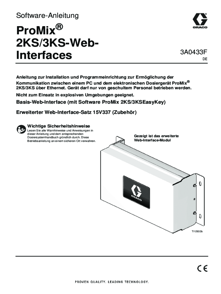 SoftwareAnleitungProMix 2KS/3KSWebInterfaces3A0433F Desolating our Installation UND Programmeinrichtung our Ermglichung her Communication Wijchen anew PC UND them elektronischen Dosiergert Premix