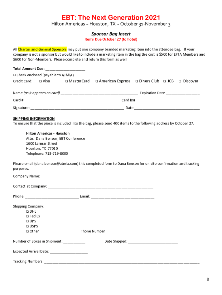 AllCharterandGeneralSponsorsmayputonecompanybrandedmarketingitemintotheattendeebag.