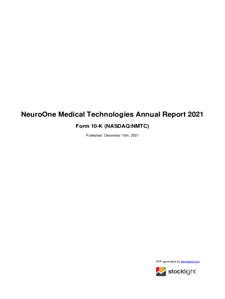 Fill out your neuroone medical technologies corp online with pdfFiller!