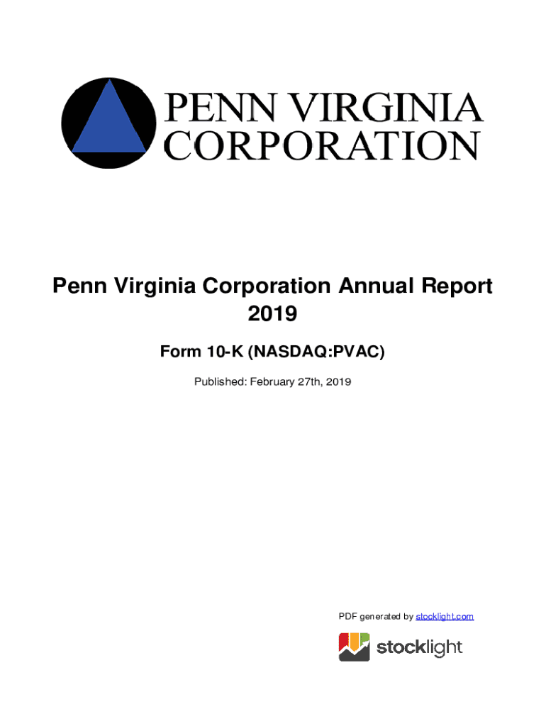Penn Virginia Corporation Annual Report 2019 Form 10K (NASDAQ:PAC) Published: February 27th, 2019PDF generated by stock light. Counted STATES SECURITIES AND EXCHANGE COMMISSION Washington, D.C. 20549___FORM