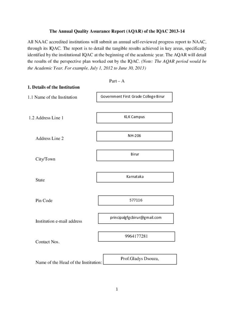 Get the free Annual Quality Assurance Report (AQAR) of the IQAC 2013-14 - gfgc kar nic