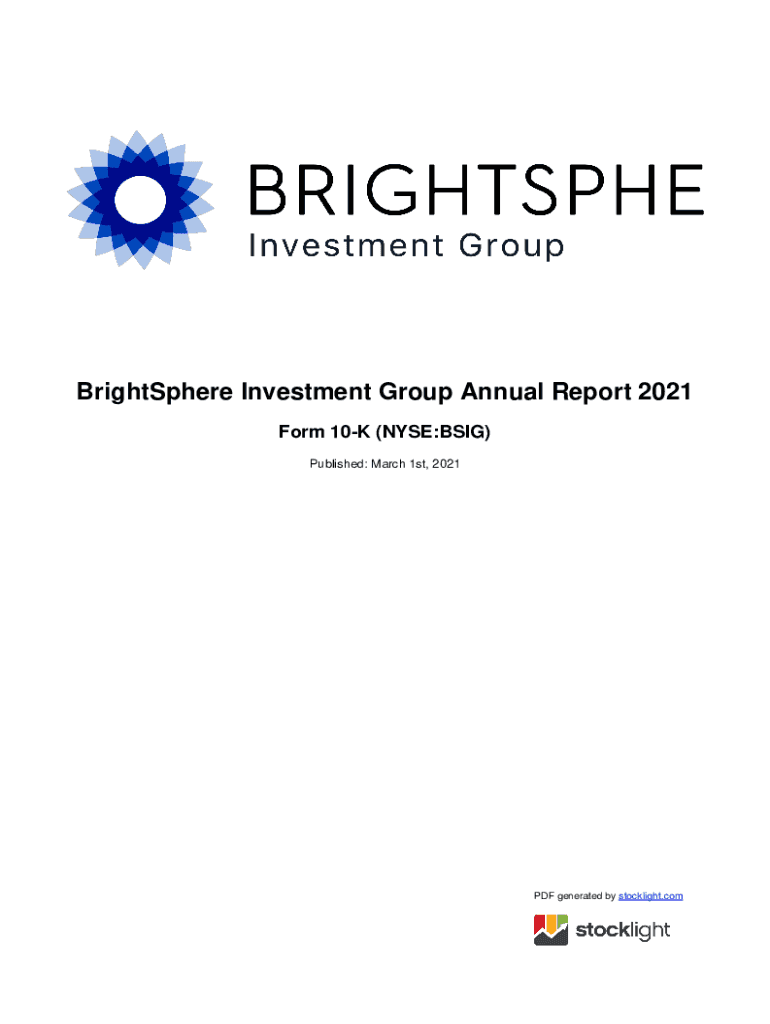 BrightSphere Investment Group Annual Report 2021 Form 10K (NYSE:BIG) Published: March 1st, 2021PDF generated by stock light. Counted STATES SECURITIES AND EXCHANGE COMMISSION Washington, D.C. 20549FORM