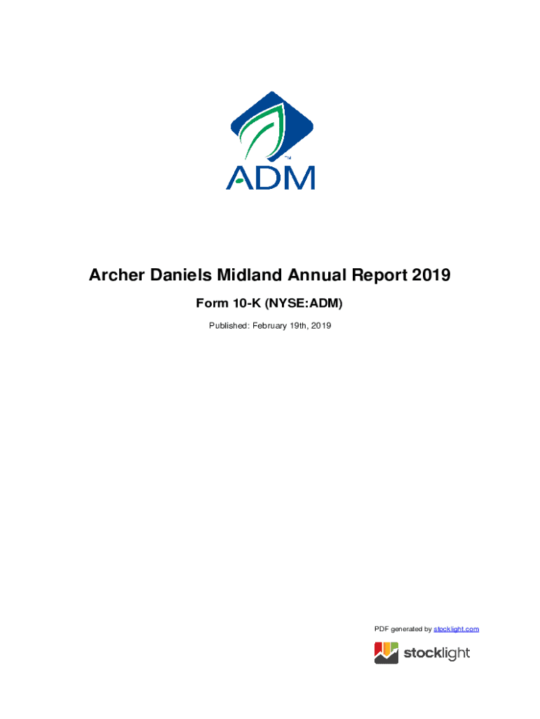 Archer Daniels Midland Annual Report 2019 Form 10K (NYSE:ADM) Published: February 19th, 2019PDF generated by stock light. Counted STATES SECURITIES AND EXCHANGE COMMISSION WASHINGTON, D. C. 20549FORM