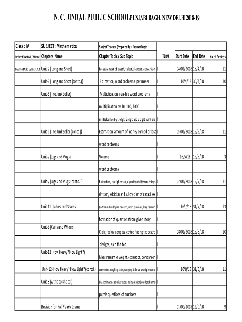 N. C. FINAL PUBLIC SCHOOLPUNJABI BAG, NEW DELHI201819 Class : SUBJECT: MathematicsSubject Teacher (Prepared by): Arena GuptaPreferred Text Book / MaterialChapter\'s NameChapter Topic / Sub TopicMATHMAGIC