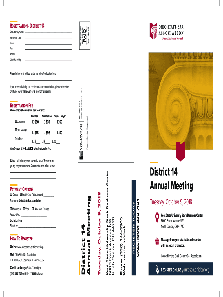 PAID Columbus, Ohio Permit No. 603NONPROFIT ORG. U.S. POSTAGERegistration District 14Ohio Attorney NumberAdmission Database Firm Addressing / State / Registration Release check all events you plan
