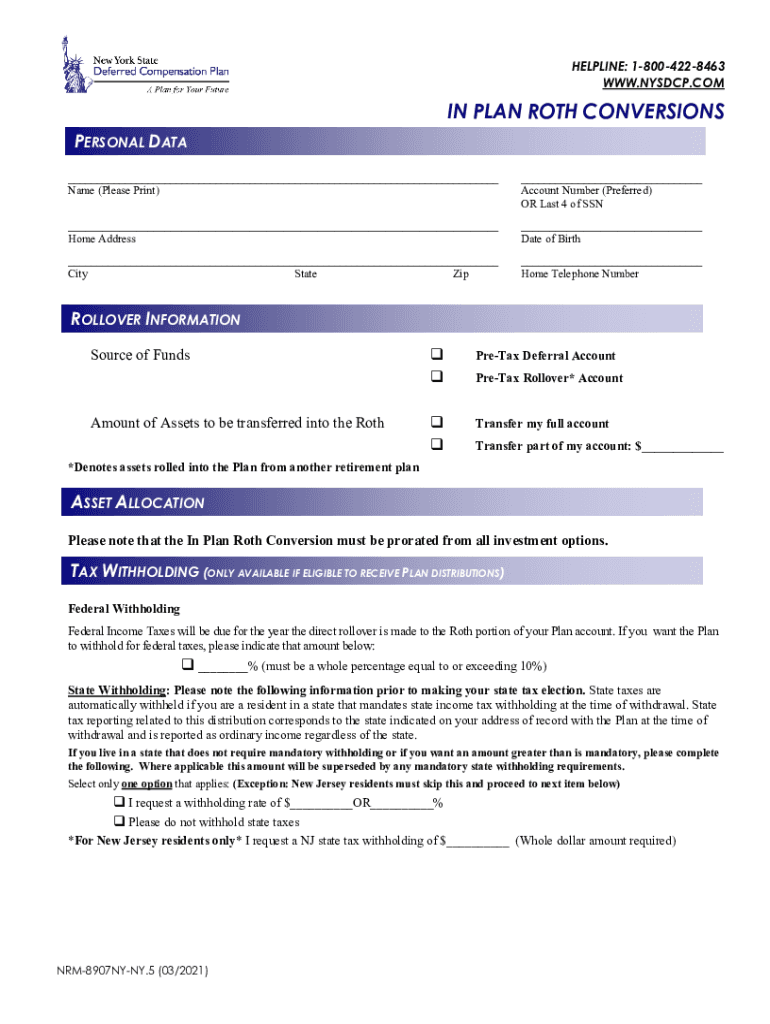 HELPLINE: 18004228463 WWW.NSDAP.COMING PLAN ROTH CONVERSIONS PERSONAL DATA ___ Name (Please Print)___ Account Number (Preferred) OR Last 4 of SSN___ Home Address___ Date of Birth___ City State Zip___