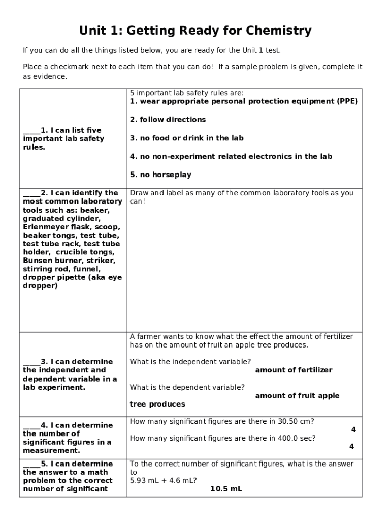 How to fill out Unit 1: Getting Ready for Chemistry If you can do all the things ...