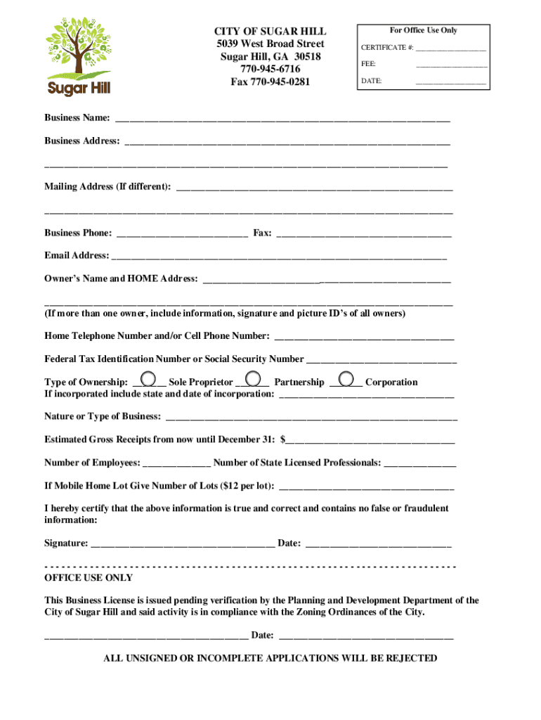 Get the free Business Application - City of Sugar Hill