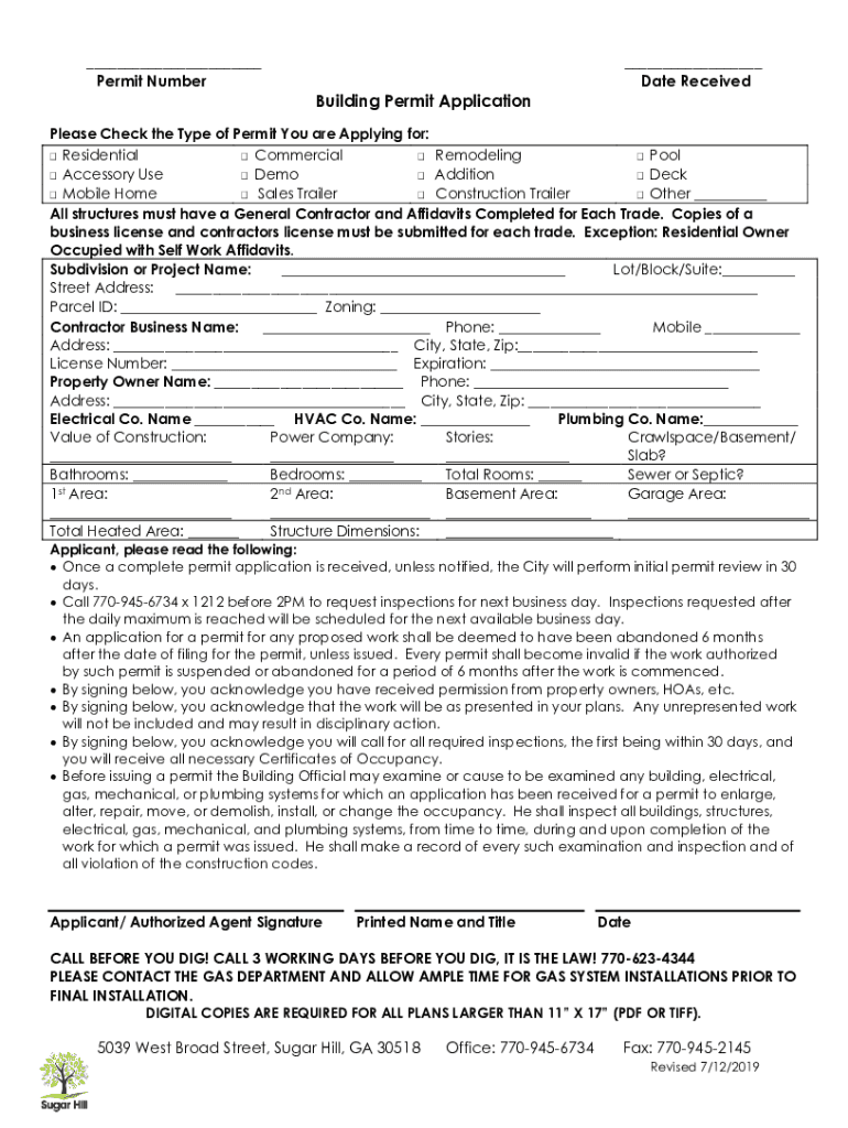 ___ Permit Number___ Date ReceivedBuilding Permit Application Please Check the Type of Permit You are Applying for: Residential Commercial Remodeling Pool Accessory Use Demo Addition Deck Mobile Home