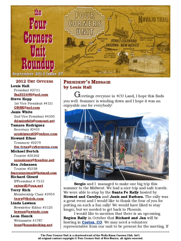 2012 UNIT OFFICERS Louis Hall President #2731 lhall15690@aol.comSteve Opp 1st Vice President #4121 QRSK@aol.comPRESIDENTS MESSAGE by Louis HallGreetings everyone in 4CU Land, I hope this finds you