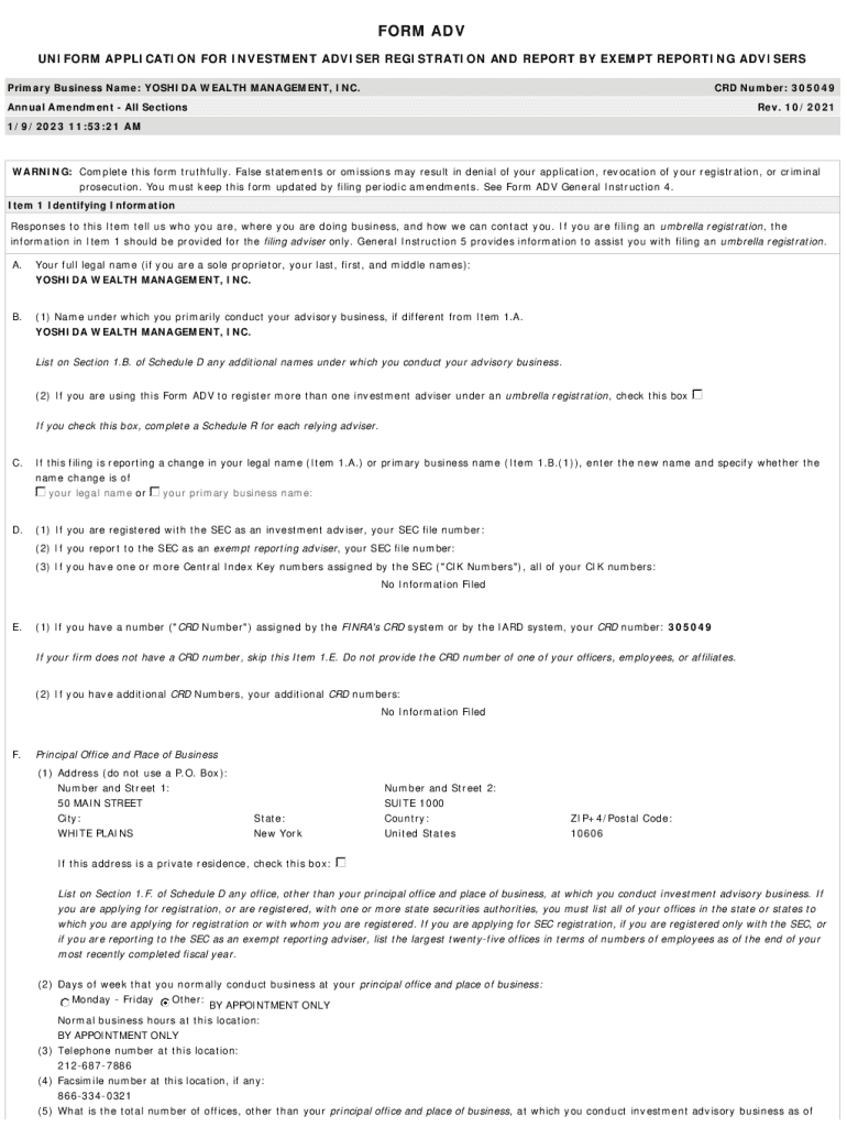 Get the free YOSHIDA WEALTH MANAGEMENT, INC.