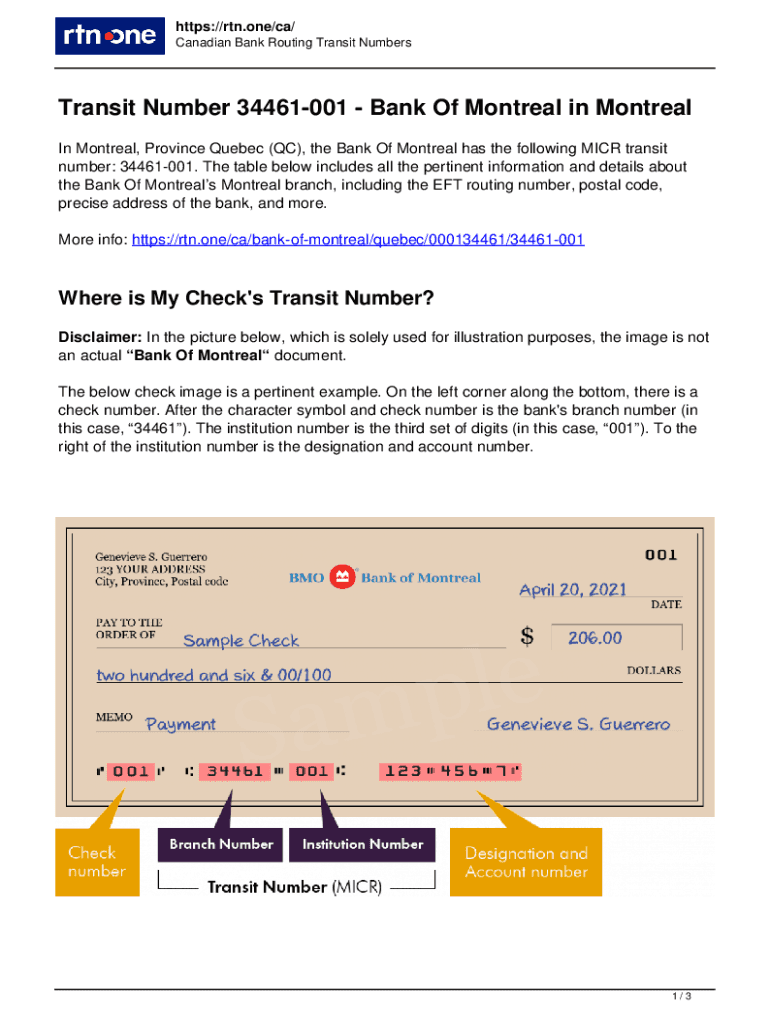 Get the free 34461-001Transit Number for the Bank Of Montreal in ... - RTN.one