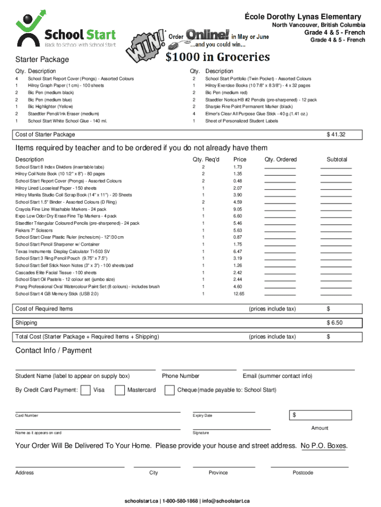 Cole Dorothy Mynas Elementary North Vancouver, British ColumbiaGrade 4 & 5 French Grade 4 & 5 FrenchStarter Package Qty. Description. Description4School Start Report Cover (Prongs) Assorted Colours2School