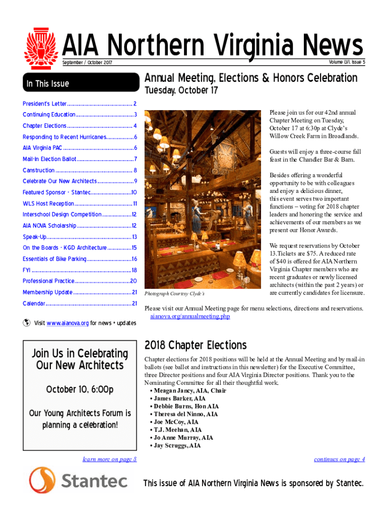 AIR Northern Virginia Newsome LVI, Issue 5September / October 2017Annual Meeting, Elections & Honors Celebration In This Issue Tuesday, October 17Presidents Letter.....................................................