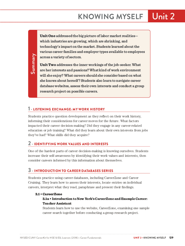 Summary knowing myselfUnit 2Unit One addressed the big picture of labor market realities which industries are growing, which are shrinking, and technologies impact on the market. Students learned