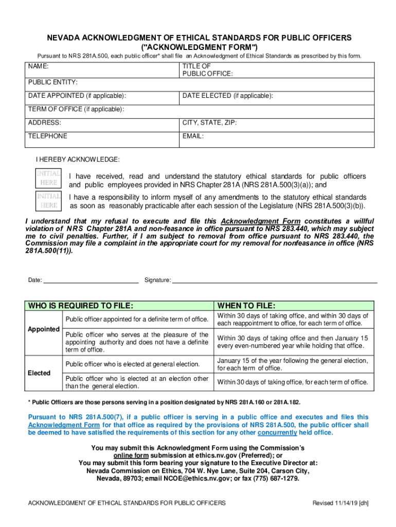 You can fill out the Nevada Commission on Ethics form online or download the form from their website and submit it by mail.