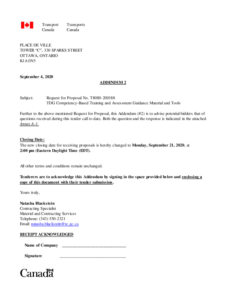 ADDENDUM 2Subject:Request for Proposal No. T8080200188