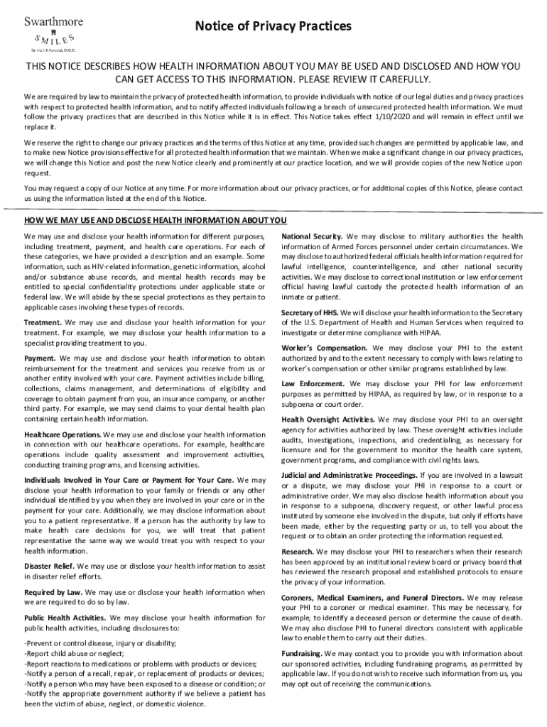 Notice of Privacy Practices THIS NOTICE DESCRIBES HOW HEALTH INFORMATION ABOUT YOU MAY BE USED AND DISCLOSED AND HOW YOU CAN GET ACCESS TO THIS INFORMATION. PLEASE REVIEW IT CAREFULLY. We are required