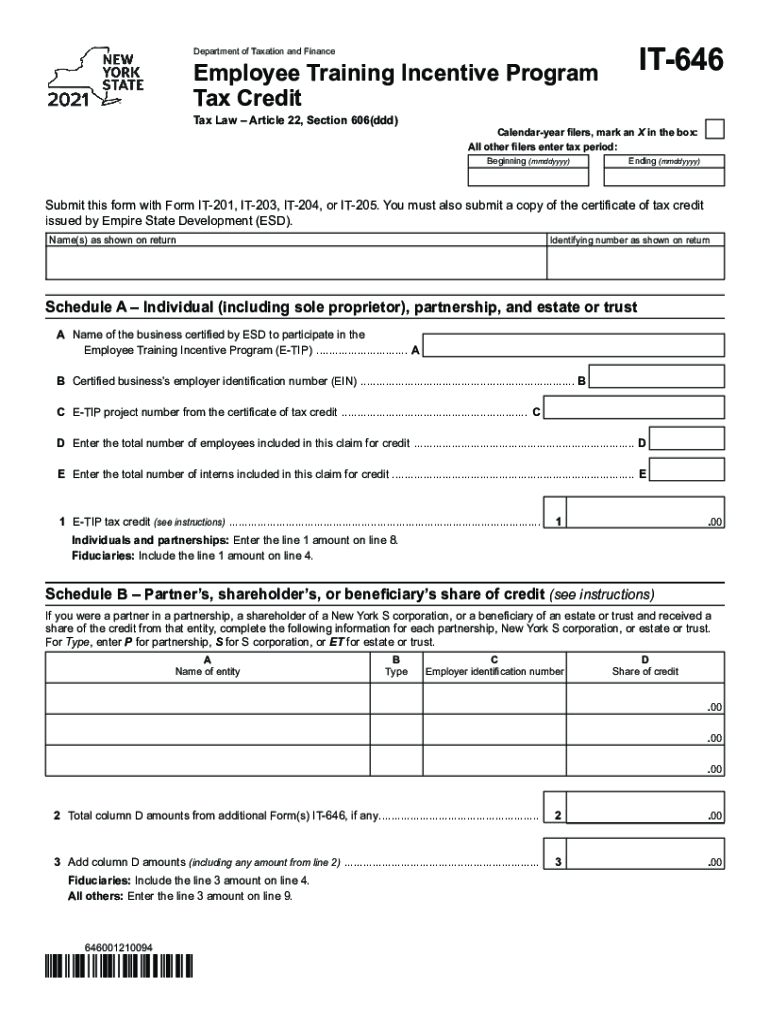 Get the free Form IT-646 Employee Training Incentive Program Tax Credit ...