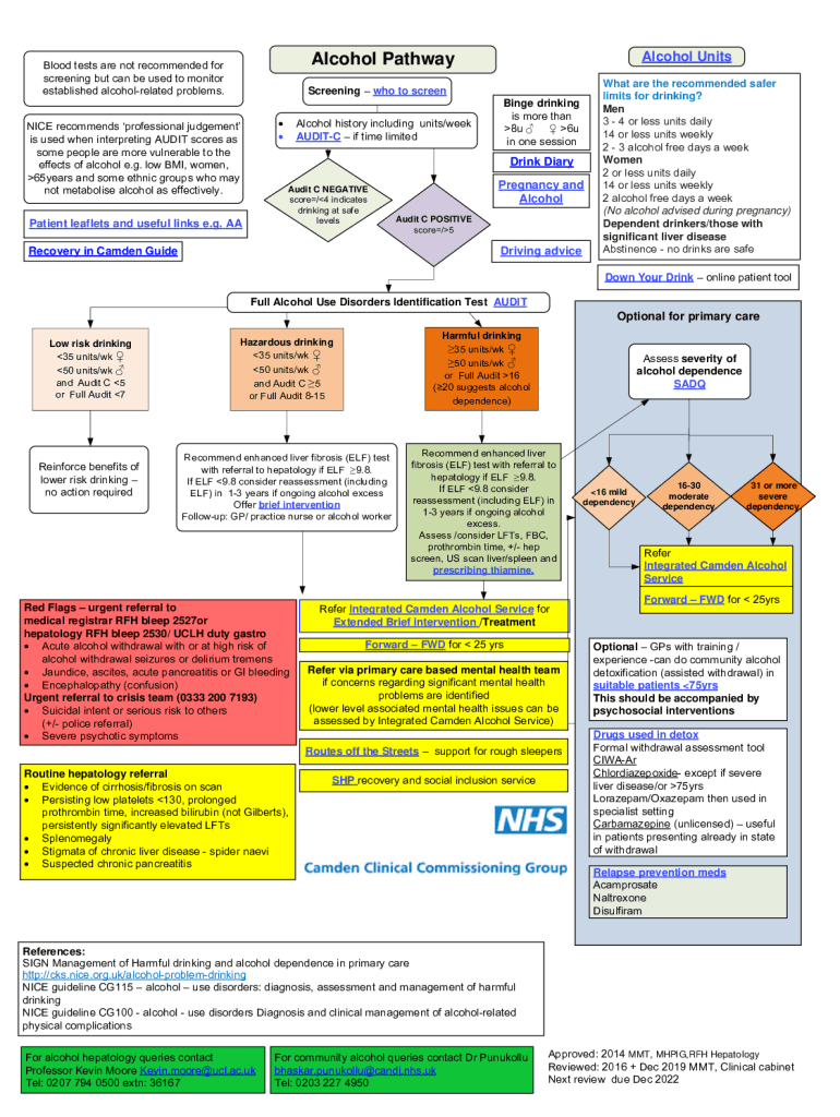 Alcohol UnitsAlcohol PathwayBlood tests are not recommended for screening but can be used to monitor established alcohol related problems. Screening who to screen recommends professional judgement