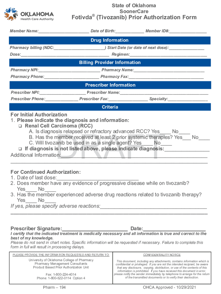SoonerCareFotivda (Tivozanib) Prior Authorization Form