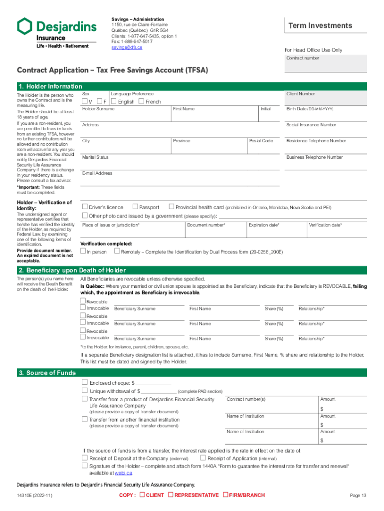 NOVEMBER 2022Term Investments CONTRACT AND CONTRACT APPLICATION Three Savings Account (FSA) Investment Options Daily Interest Investment Redeemable Term Investment Guarantee Advantage14310E (202211)Page
