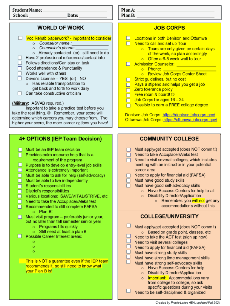 Student Name: ___ School: ___ Date: ___WORLD OF WORK VOC Rehab paperwork? Important to consider o Counselor name : o Counselors phone: o Already contacted (or) still need to do Have 2 professional