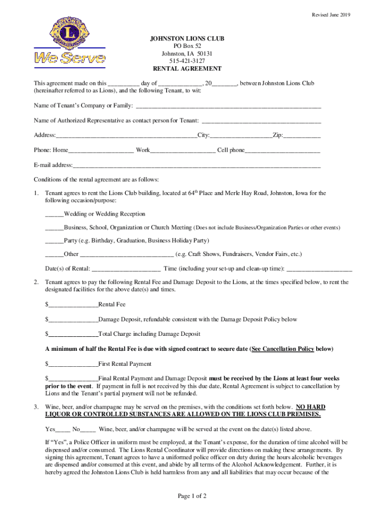 Get the free Rental Agreement - Johnston Lions Club and Foundation