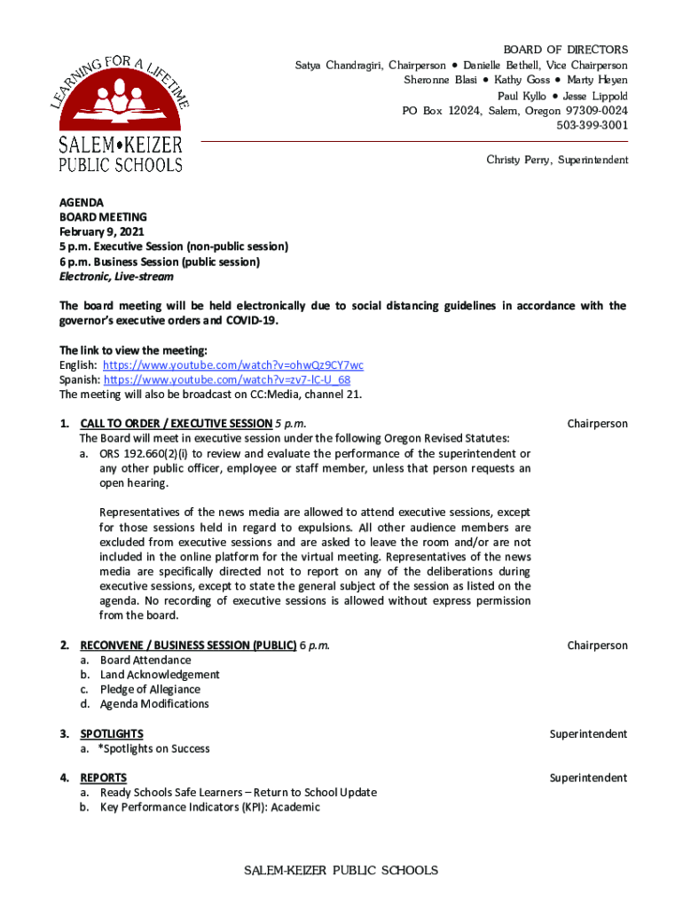 Get the free Business Session (public session) - salkeiz k12 or