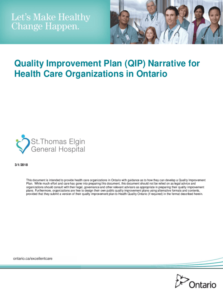 Quality Improvement Plan (HIP) Narrative for Health Care Organizations in Ontario3/1/2018This document is intended to provide health care organizations in Ontario with guidance as to how they can
