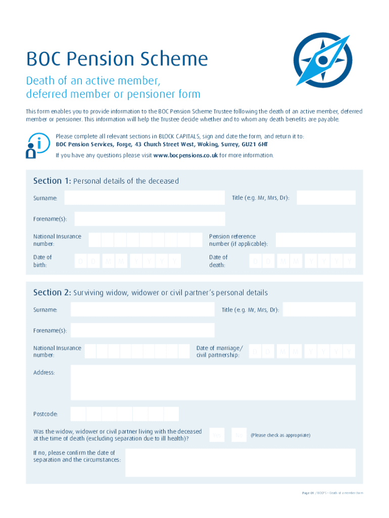 deferred member or pensioner forms form enables you to provide information to the Suspension Scheme Trustee following the death of an active member, deferred
