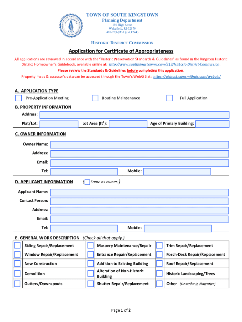Kingston Historic DistrictHomeowners GuidebookTown of South Kingstown, Rhode Island as amended June 2013 Rev. 9/29/2022Acknowledgements The South Kingstown Historic District Commission wishes to thank