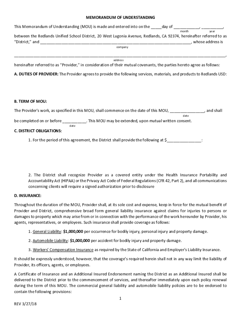 This Memorandum of Understanding (YOU) is made and entered into on the ___day of ___, ___,