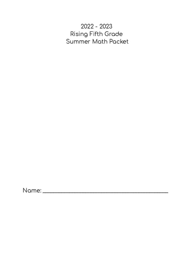 Get the free 2022 - 2023 Rising Fifth Grade Summer Math Packet Name
